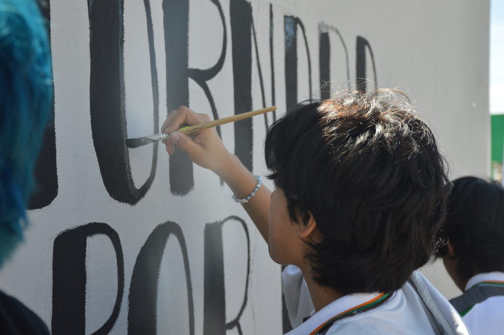 Durante las actividades, estudiantes de este plantel participaron en la pinta de un mural del “Balón de la Paz”, símbolo que representa el compromiso de la comunidad escolar con la convivencia pacífica, el respeto y la unidad.