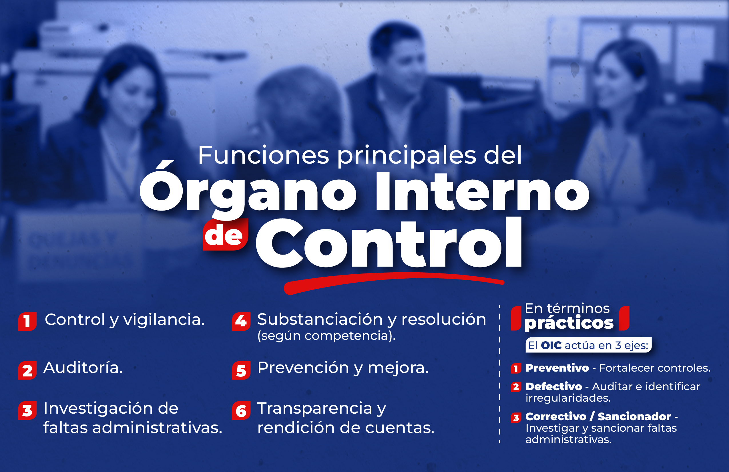 Control de Riesgos: Identifican y gestionan riesgos que puedan afectar la eficacia del gobierno o propiciar actos indebidos.